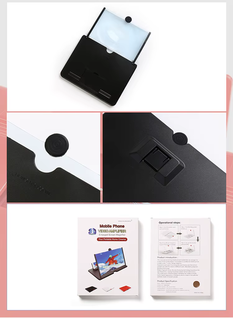 Black 12″; Mobile Phone 3D Projector Screen with Foldable Holder Stand Screen Magnifier.