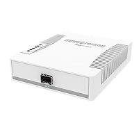 The RB260GS is a small SOHO switch. It has five Gigabit Ethernet ports and one SFP cage powered by an Atheros Switch Chip.